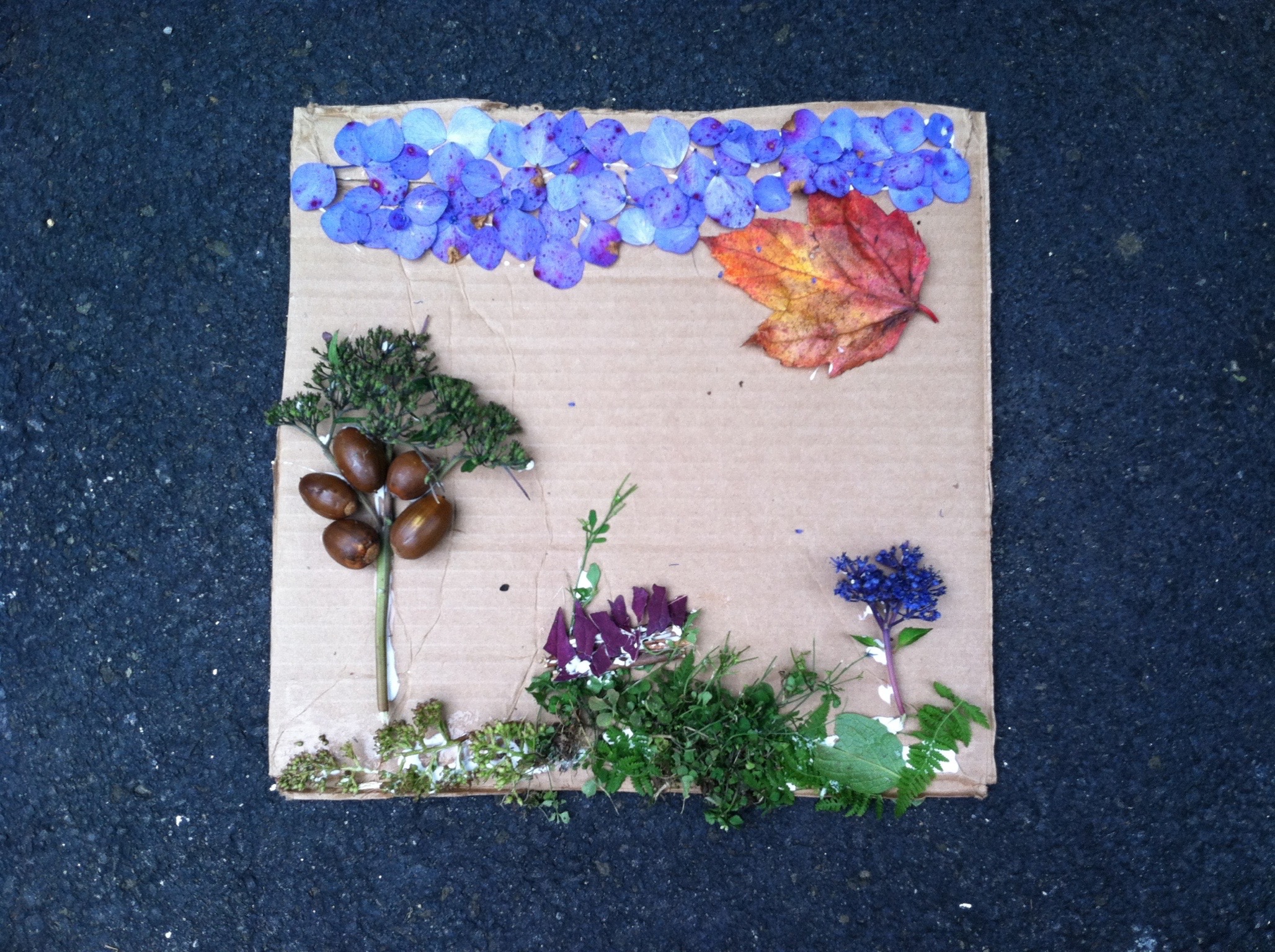 - Collect acorns, sticks, flower petals, etc. and make a sign, story or press flowers