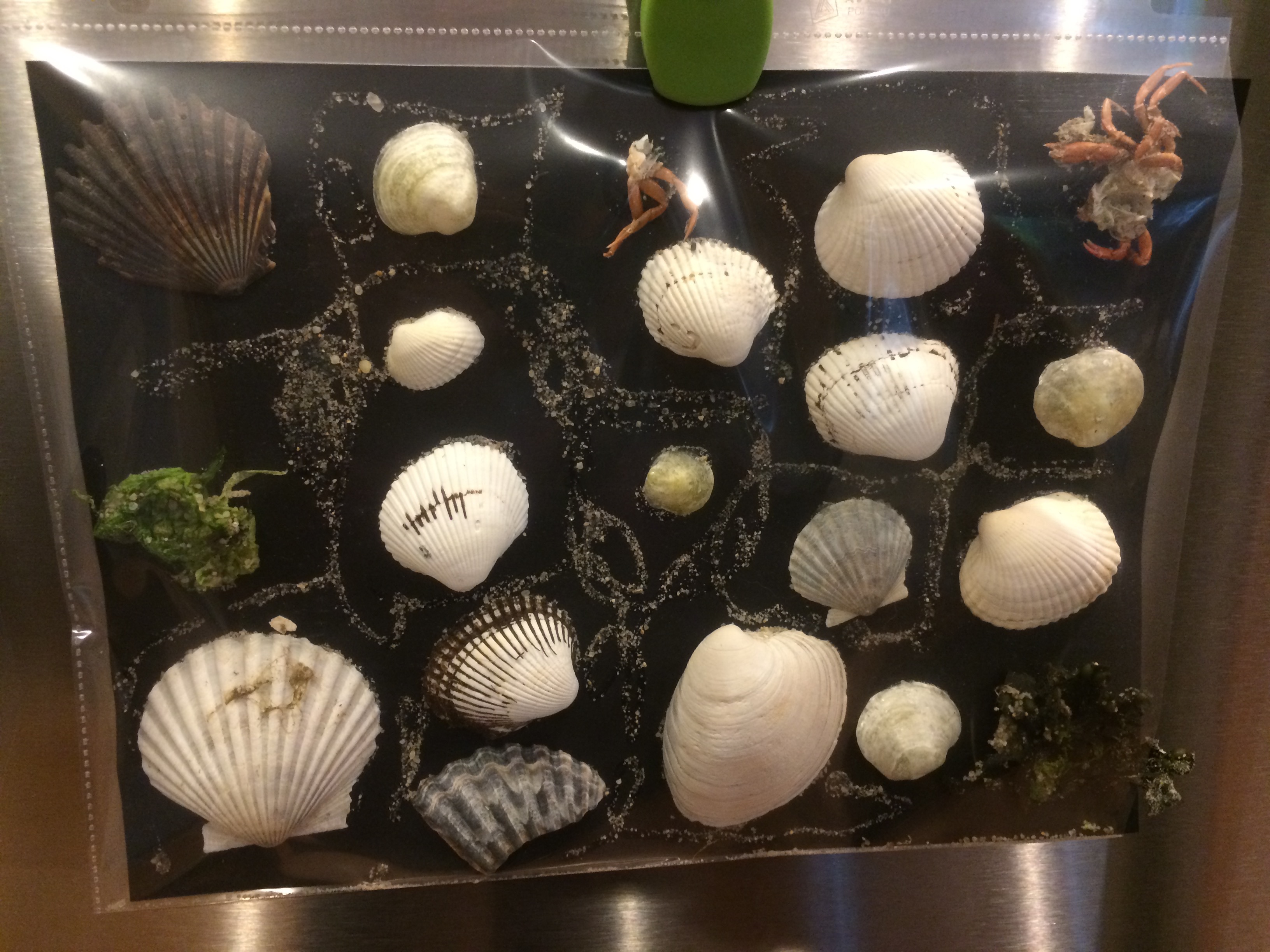 After picking a bunch of flowers from the garden, we pressed and framed them 9. Go to the beach, collect shells and make shell art